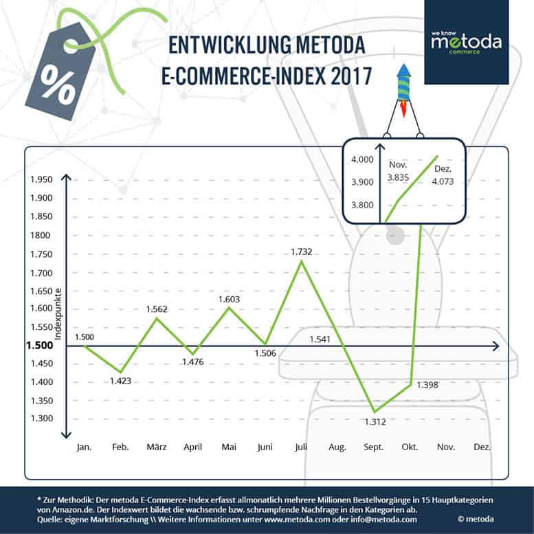 Für den metoda E-Commerce-Index werden allmonatlich die Zahl der Bestellungen der insgesamt 1.500 nachfragestärksten