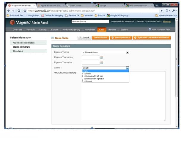 Magento erlaubt hohe Flexibilität bei der Erstellung verschiedener Seitentypen. Ob eine Seite beispielsweise einspaltig, zwei- oder dreispaltig ist kann im Backend ohne Programmierkenntnisse festgelegt werden.