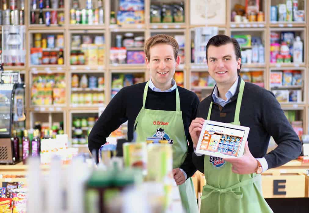 „Wir wollten den Lebensmittel-Einzelhandel so darstellen, dass wir uns selber vorstellen konnten, dort einzukaufen“, erklärt im Gespräch Sebastian Diehl. „Der Ausgangspunkt war ein kleiner Laden mit möglichst vielen Produkten.“ Im Unterschied zum konventionellen Lebensmittelhandel setzen Emmas Enkel dabei auf eine recht geringe Anzahl an präsentierten Produkten (rund 500 Artikel), während im angeschlossenen Lager, das die Verkaufsfläche deutlich übersteigt, noch einmal ca. 1.500 Artikel verfügbar sind. Kunden können sich ihren Einkauf in der Kaffeeecke des Ladens auf iPads zusammenstellen und die fertig gepackten Tüten dann 10 Minuten später am Verkaufstresen abholen. „Um unseren Radius zu erweitern, kam schließlich der Online-Shop dazu“, berichtet Diehl. „Wir haben das alles mit Leben gefüllt und waren dann auf einmal bei diesem umfassenden Multichannel-Ansatz, der bisher in Europa einzigartig ist und eine große Resonanz hervorruft.“