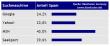 So fanden sich bei bestimmten Suchanfragen über 50% SuMa-Spammer unter den Top-Treffern (z.B. "zinsguenstige darlehen: 52,5%). Über alle Suchanfragen gemittelt ergaben sich immer noch hohe Anteile an Spamming (siehe Abbildung, Klick vergrößert). Am ’saubersten‘ schnitt noch Yahoo ab, MSN war mit 43,0% Spammer-Seiten der (traurige) Spitzenreiter.